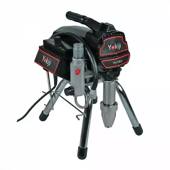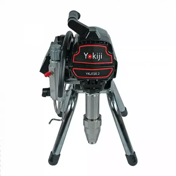 Компактный поршневой безвоздушный окрасочный аппарат с фильтром материала, электронной регулировкой давления и бесщеточным мотором. Способен работать с материалами средней и низкой вязкости. Применяется при покраске фасадов, металлических и деревянных конструкций. Принцип работы прост: краска подается от аппарата через краскопульт под высоким давлением. Также эта модель оснащена электронной регулировкой давления и дополнительным фильтром, который устанавливается на корпусе аппарата.