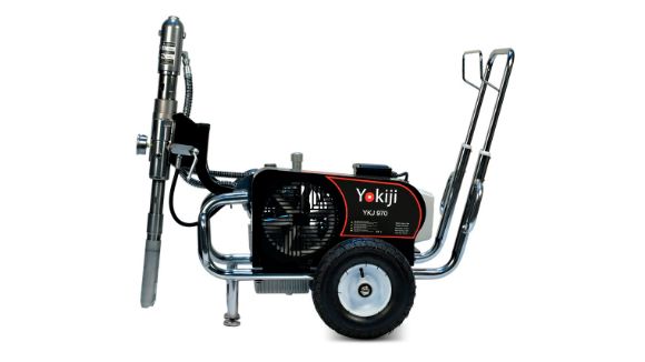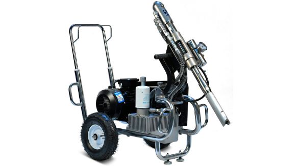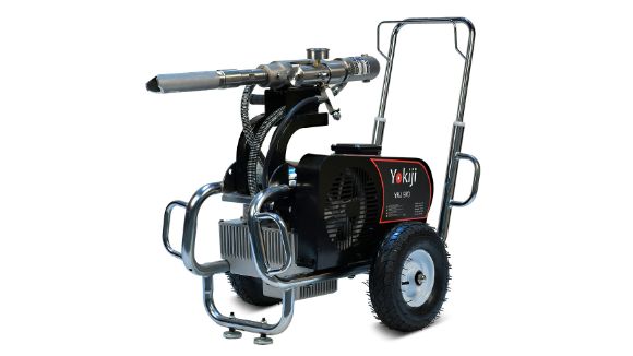 Гидропоршневой безвоздушный электрический окрасочный аппарат, способный работать с материалами любой вязкости: красками, эмалью, шпаклевкой, огнезащитными, гидроизоляционными, антикоррозийными и цинкозаполненными составами, мастикой, грунтовкой, то есть с любыми материалами, которые можно наносить через поршневой безвоздушный окрасочный аппарат.